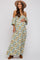 A floral print maternity maxi dress with a smocked bust and long sleeves that can be worn on or off shoulder. Includes side pockets.