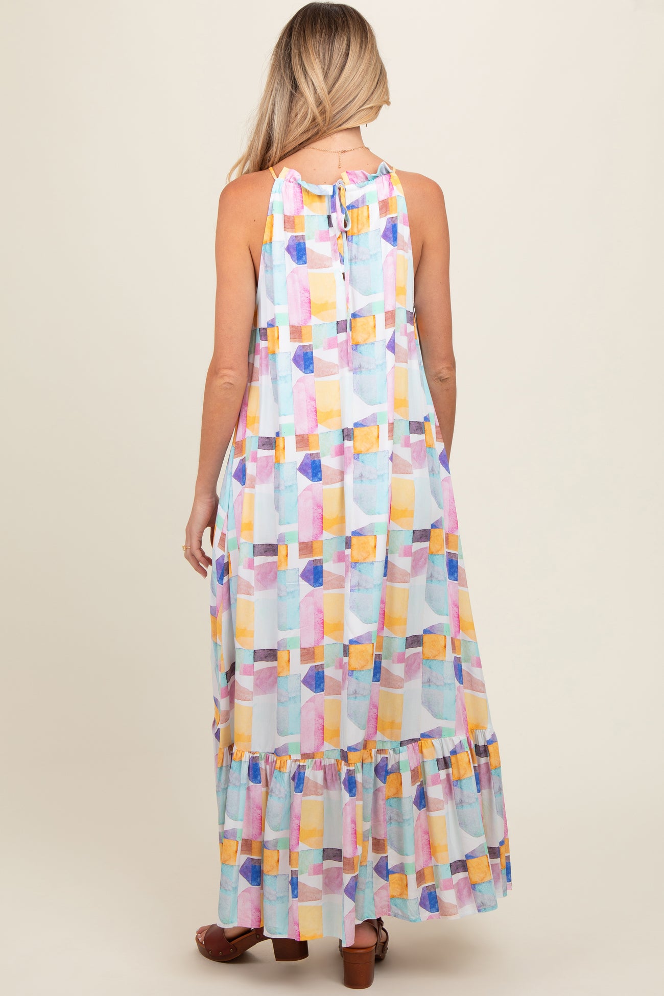 White Empire Ruffle Hem Maternity Midi Dress