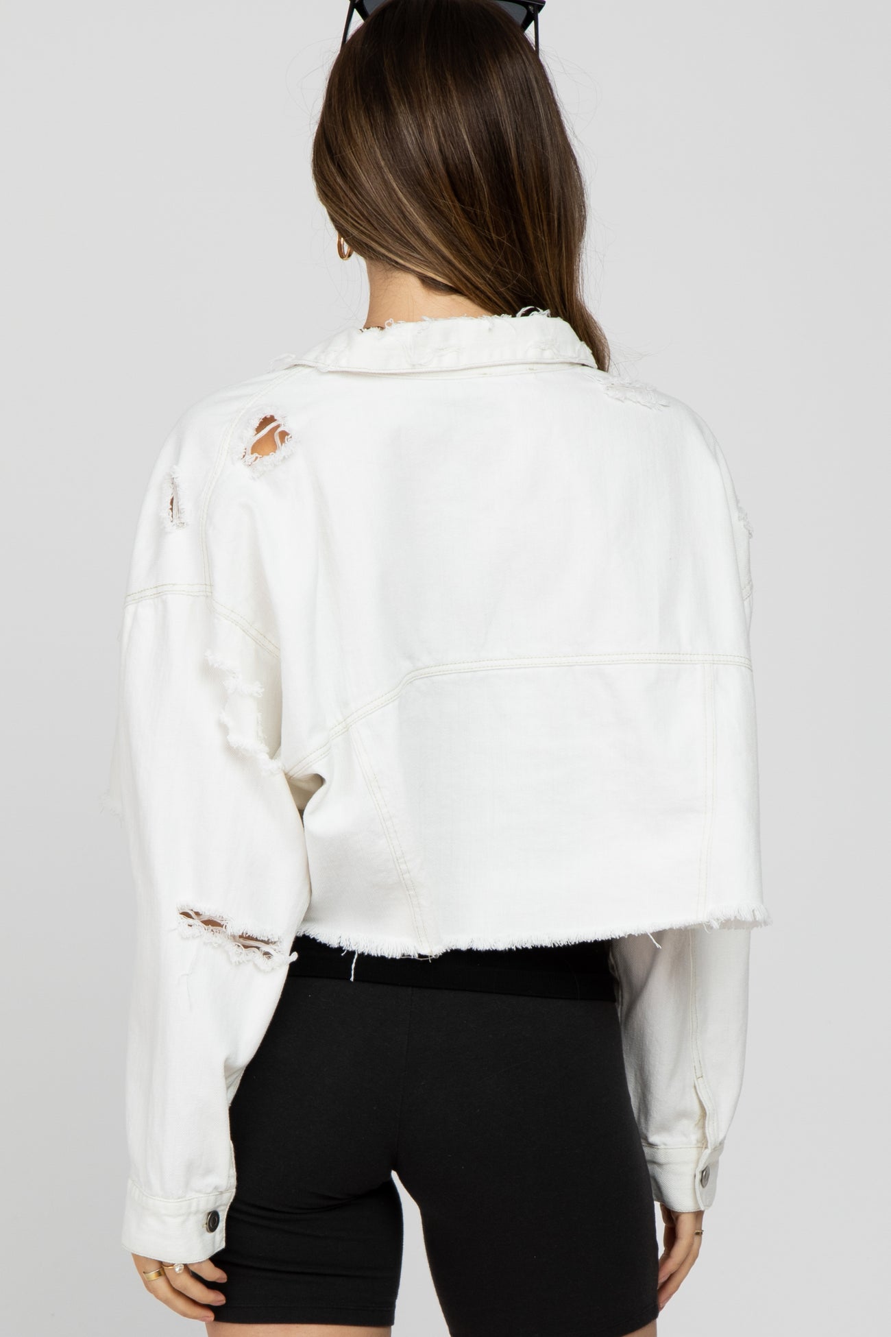 White Raw Hem Cropped Maternity Jean Jacket