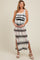 A striped crochet maternity swimsuit cover up set featuring a cropped sleeveless top and a side slit maxi skirt with an adjustable drawstring waist.