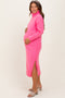White Striped Ribbed Collared Long Sleeve Maternity Top