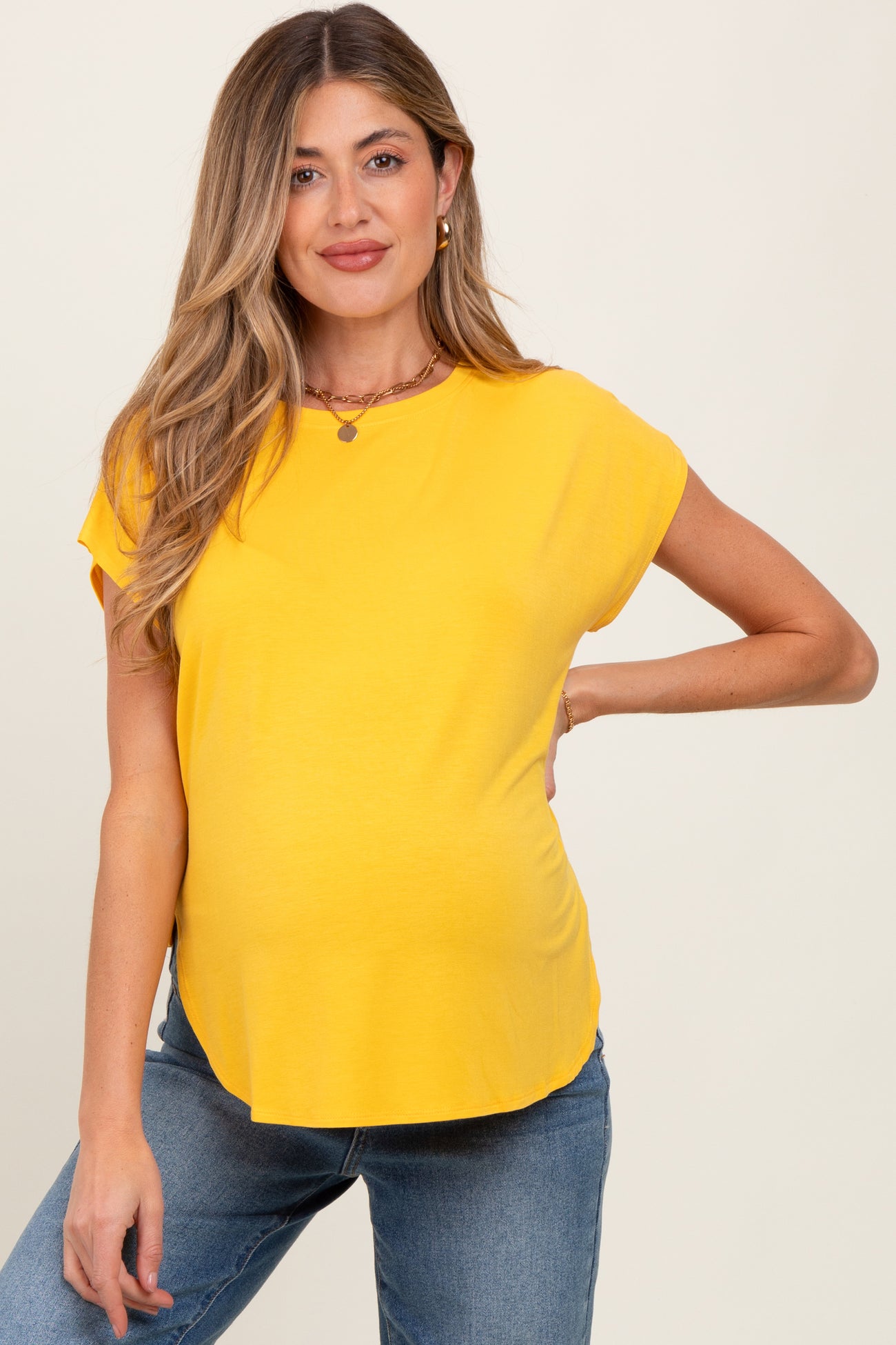 Yellow Dolman Sleeve Round Neck Maternity Top