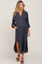 A ribbed knit maternity midi dress featuring a mock neckline, long sleeves and a flared skirt.