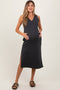 Black Ribbed Hooded Wrap Long Sleeve Maternity Top