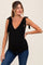 Black Solid Ribbed Sleeveless Tie V-Neck Maternity Top