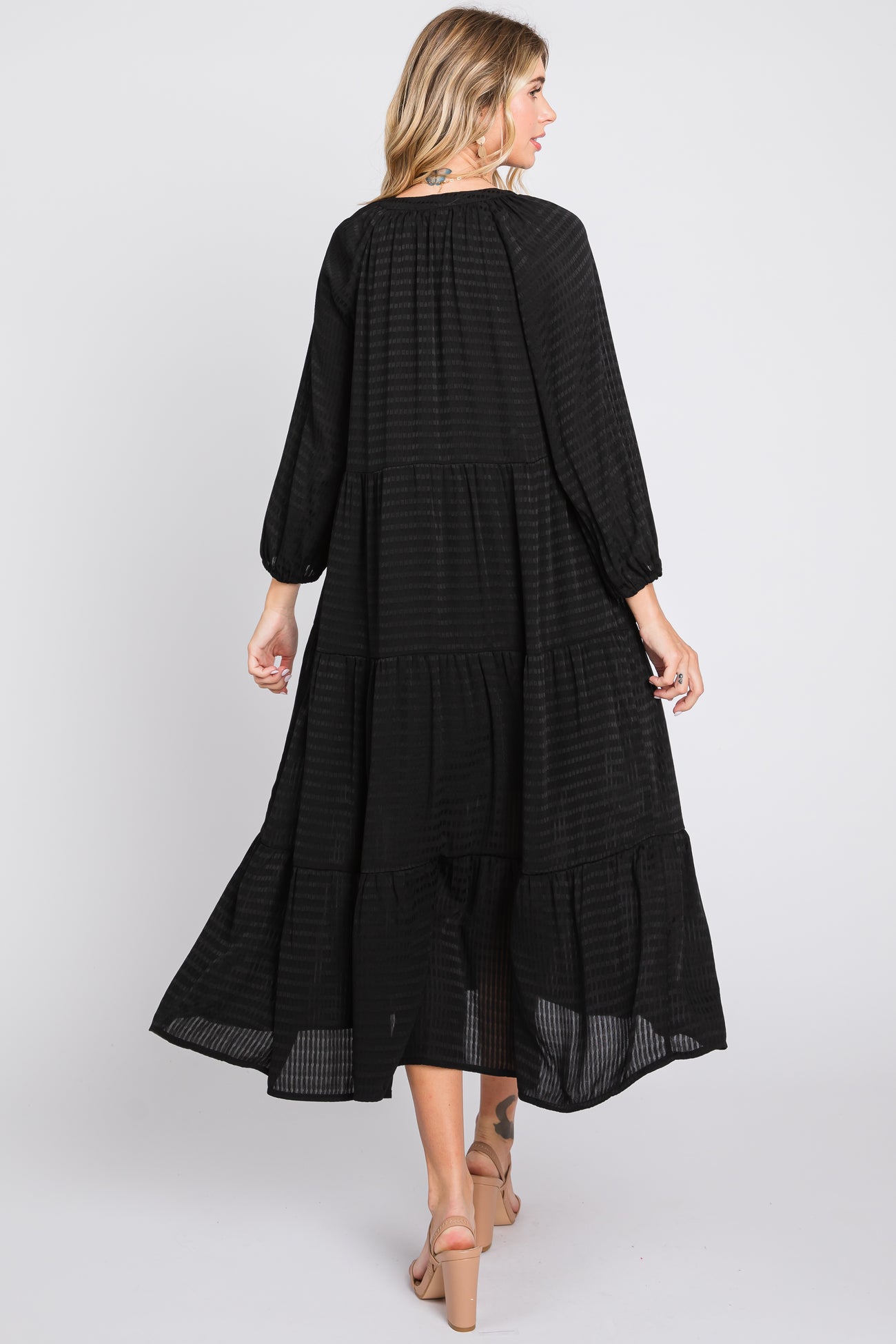 Black Textured Tiered Maternity Midi Dress