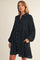 Elevate your wardrobe with our Black Tiered Back Detail Button Down Dress. Featuring a relaxed fit with a tiered silhouette, this dress combines effortless style and comfort. The classic button-down front and sharp collar add a tailored touch, while the delicate back detail brings a subtle, feminine flair. Long sleeves with gathered cuffs create a softly billowed effect, perfect for any season. Pair it with ankle boots for a chic daytime look or dress it up with heels for evening events. Versatile, timeless, and easy to wear – your new go-to dress for every occasion.