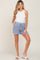 A pair of maternity shorts featuring an elastic drawstring waist and side pockets.