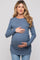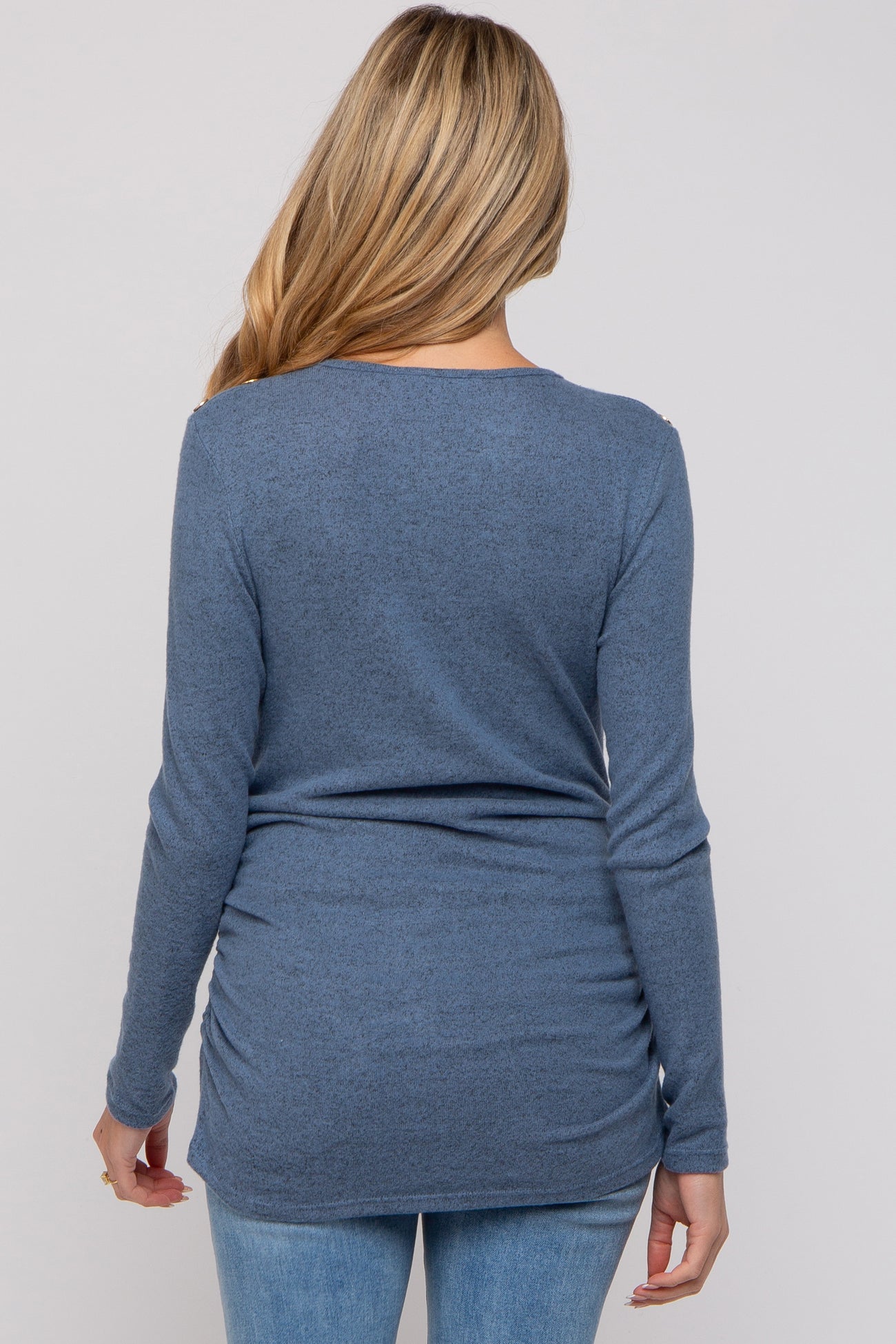 Blue Soft Knit Button Shoulder Ruched Side Maternity Top