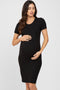 A pair of medium wash maternity skinny jeans with five pockets, a full panel elastic bellyband and slight distressing. Material has medium stretch.