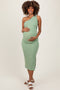 Brown Sleeveless Ribbed Knit Maternity Midi Dress