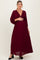 Burgundy Solid Long Sleeve V-Neck Smocked Detail Maternity Maxi Dress