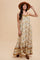Cream Floral Border Print Lace Up Back Maxi Dress