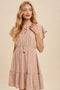 Cream Floral Chiffon Flutter Sleeve V Neck Midi