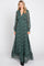 Forest Green Leaf Print Balloon Sleeve Maxi Dress