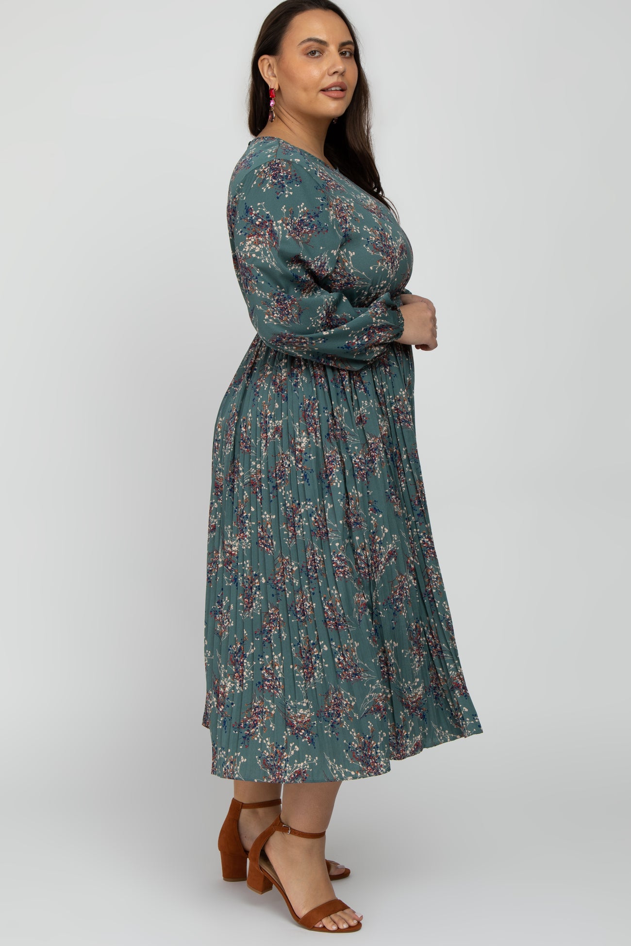 Jade Floral Pleated Plus Midi Dress