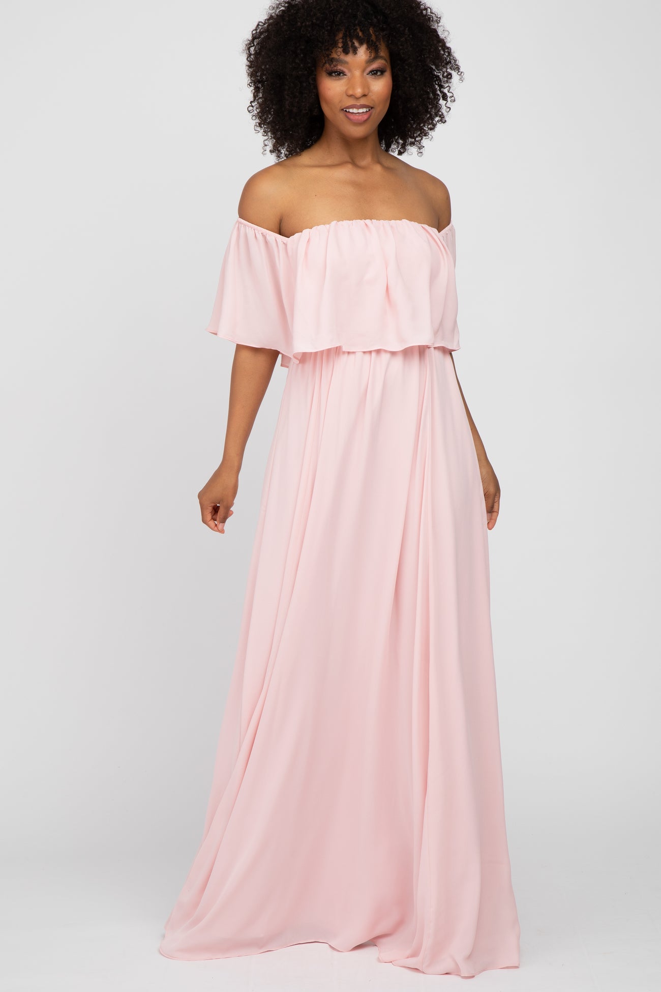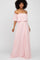 Details A solid off shoulder gown. Dress is double lined. Content + Care