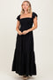 Navy Embroidered Floral Square Neck Maternity Maxi Dress