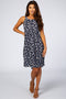 Navy Tiered Ribbed 3/4 Sleeve Midi Dress