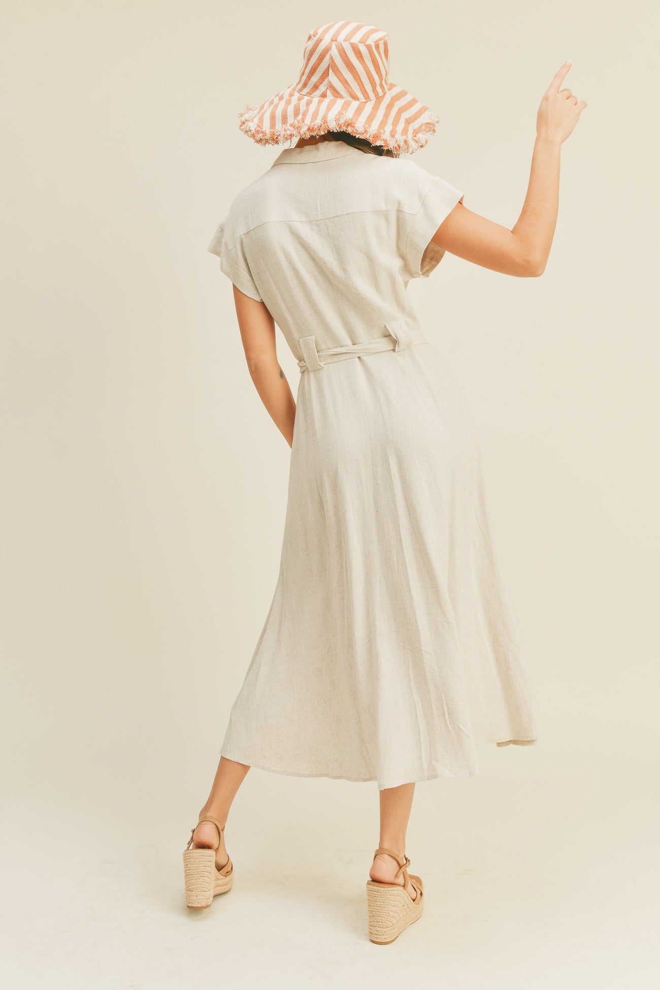 Oatmeal V-Neck Buttondown A Line Shirt Dress