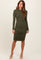 Olive Ribbed Mock Neck Ruched Long Sleeve Dress