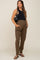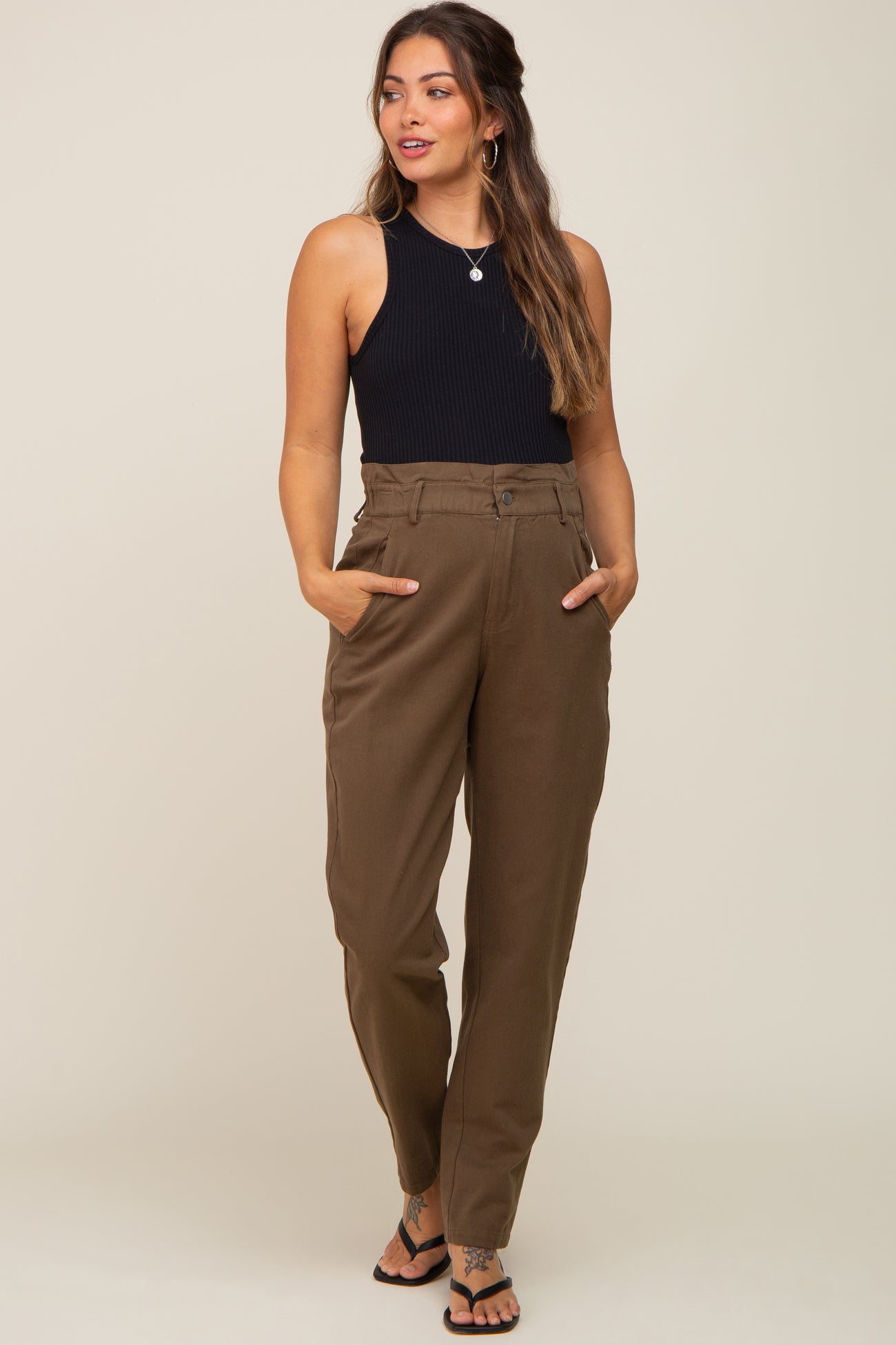 Olive Smocked Waist Straight Leg Maternity Jeans