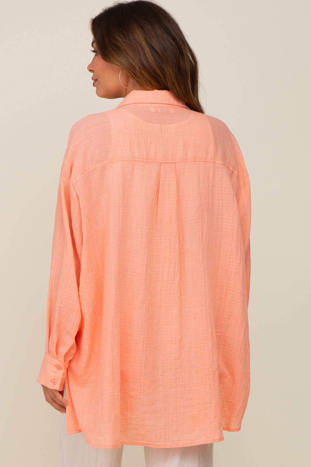 Peach Lightweight Sheer Button Down Maternity Blouse