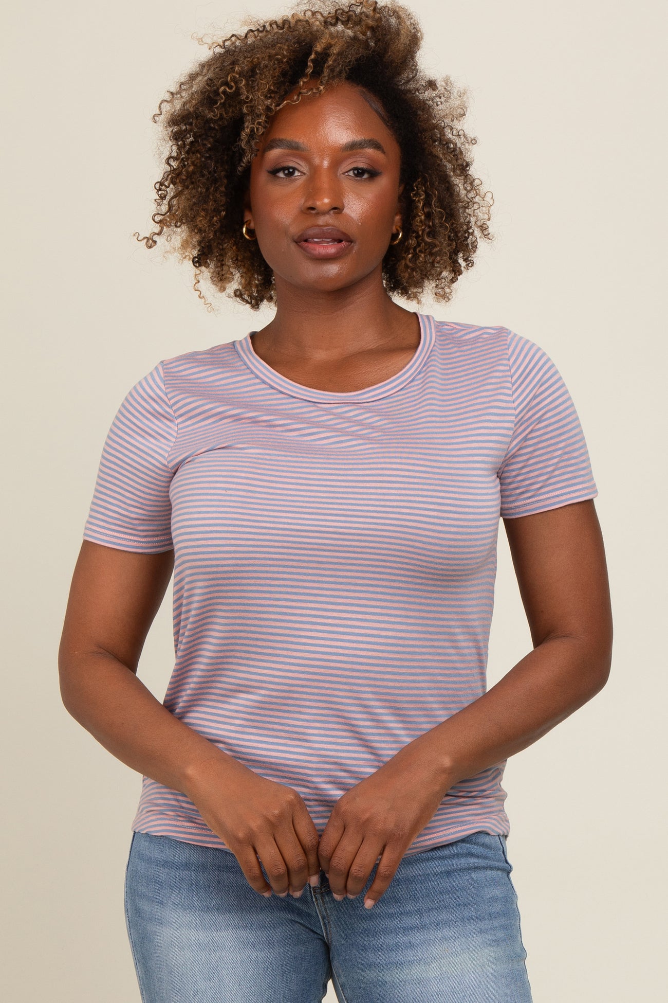 Pink Striped Short Sleeve Top
