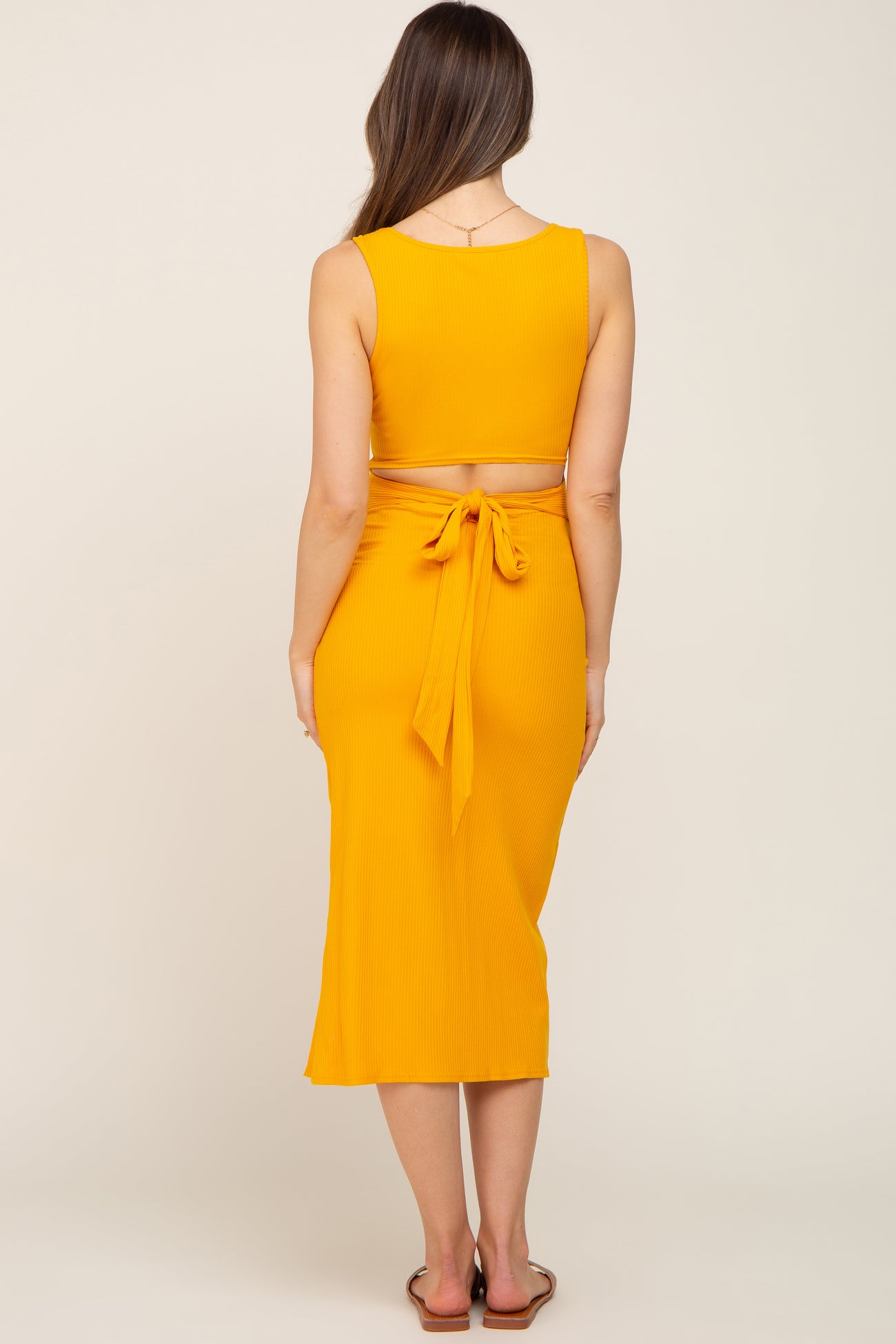 Yellow Ribbed Back Cutout Maternity Midi Dress
