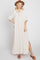 Details A linen maxi dress with a collared neckline, top buttons, short dolman sleeves, side pockets, and side slits. Content + Care