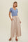 Beige Pleated Elastic Waist Wide Leg Crop Pants