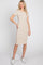 A solid short sleeve fitted dress in a ribbed material with a round neckline.
