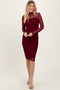 Beige Ribbed Knit Fitted Midi Sweater Dress