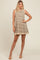 Beige Striped Knit Pleated A-Line Mini Dress