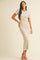 Beige/White Short Sleeve Sweater Knit Rib Midi Dress
