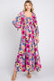 Details A printed long sleeve blouse and shorts set in a silky material. Features collared neckline and button down front on top and drawstring elastic waistband with pockets on shorts. Content + Care