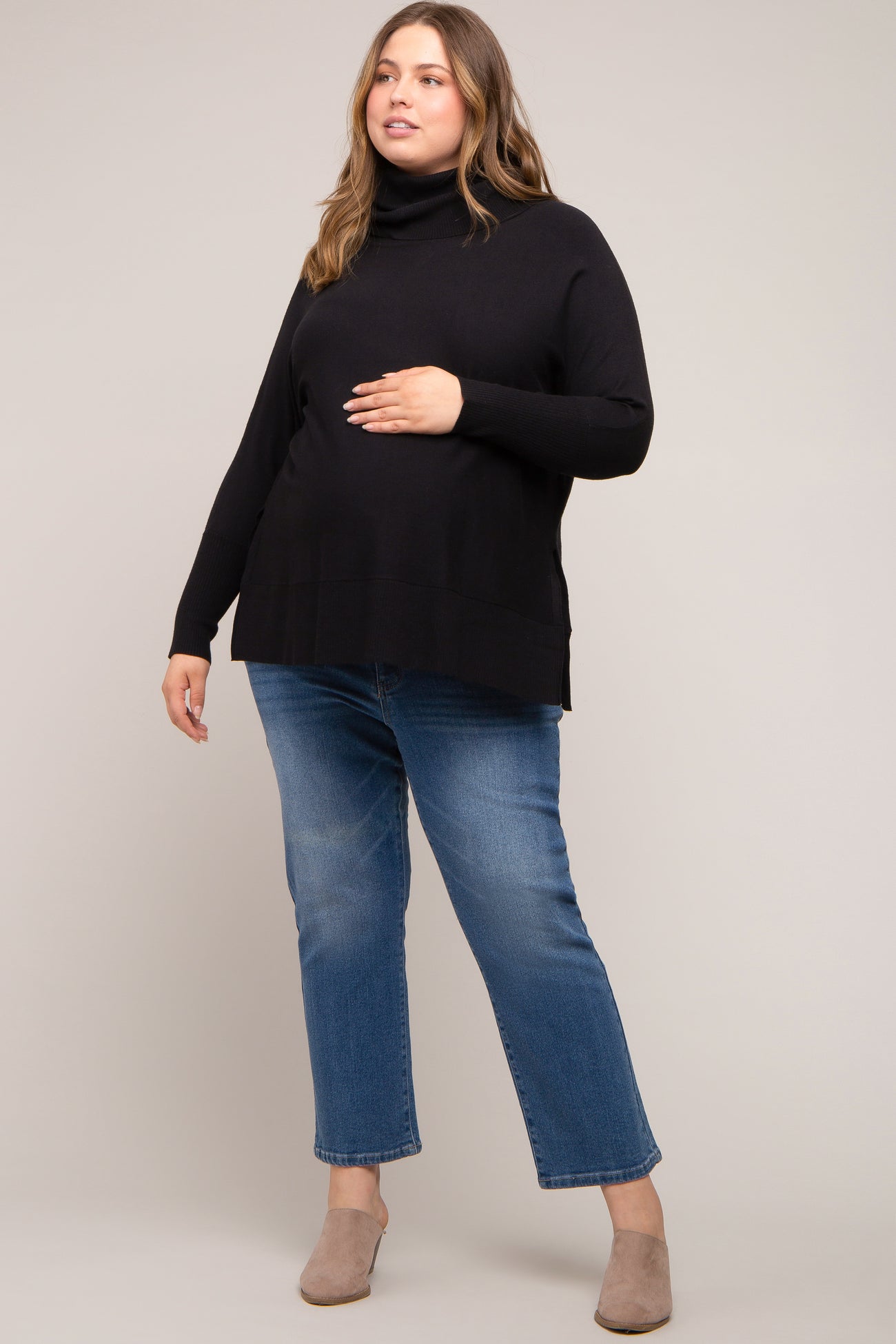Black Cowl Neck Dolman Sleeve Maternity Plus Sweater