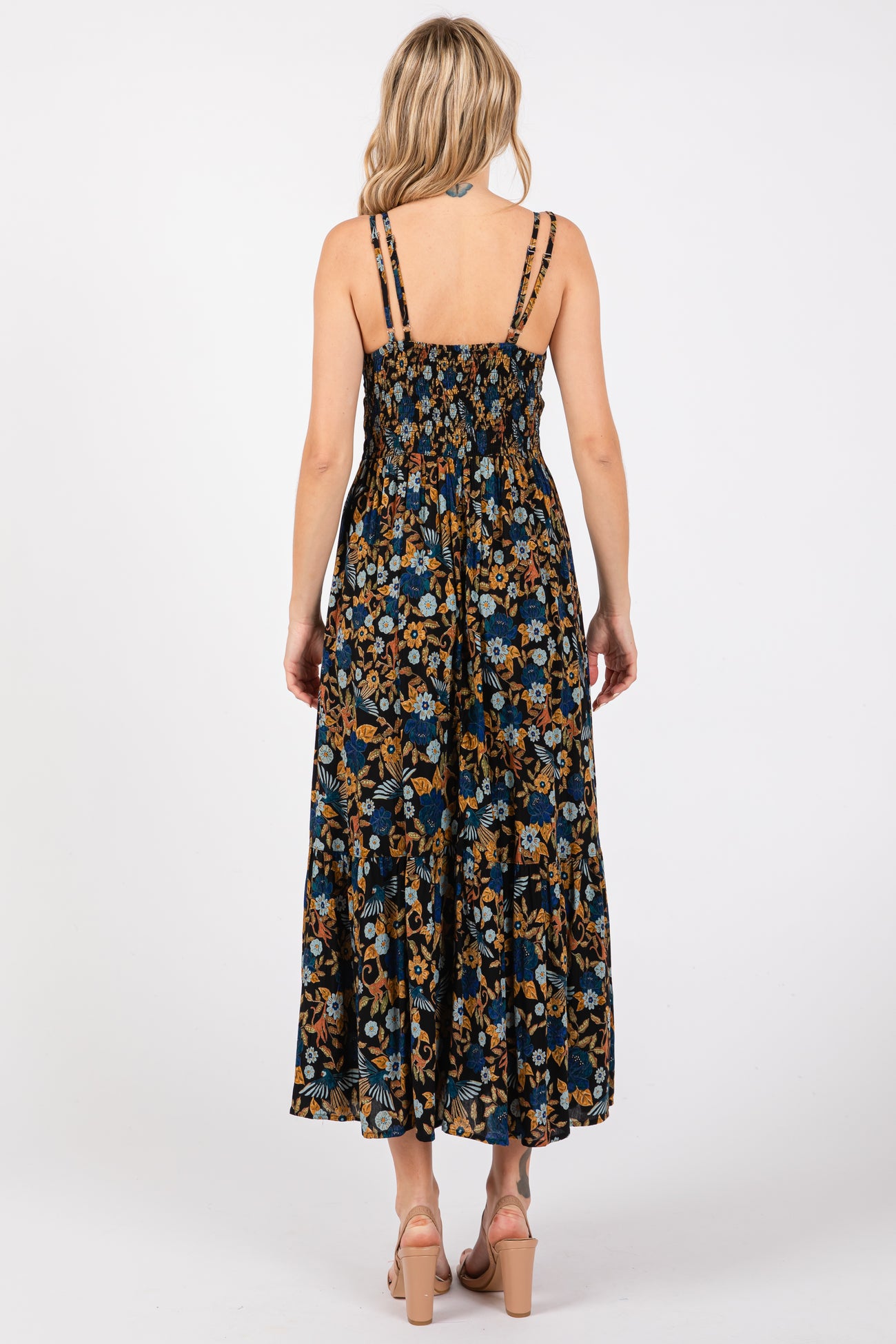 Black Floral Crochet Inset V-Neck Midi Dress