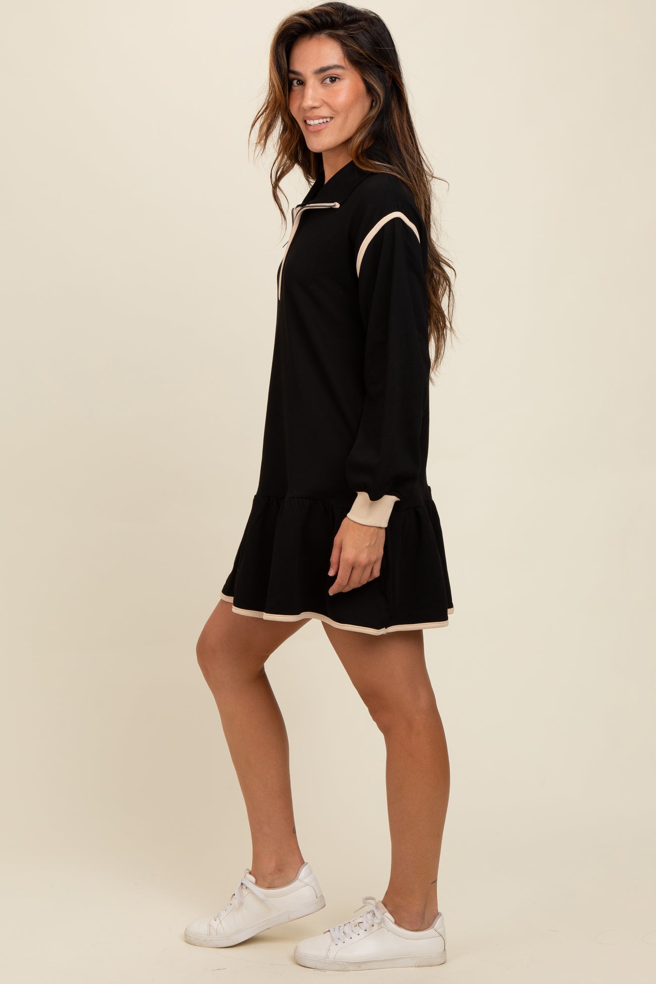 Black Half Zip Ruffle Drop Hem Mini Dress