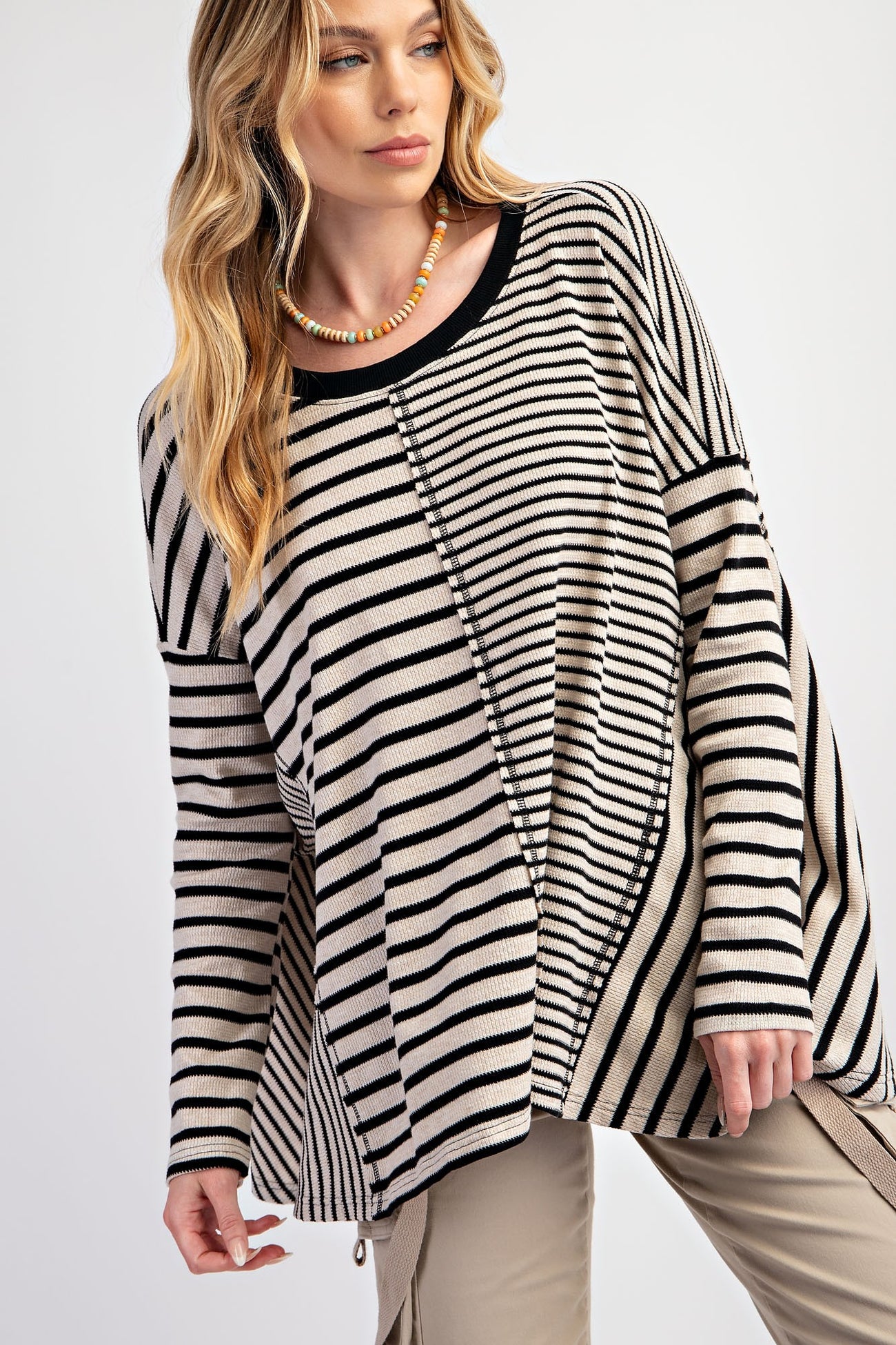 Black Mixed Stripe Trapeze Top