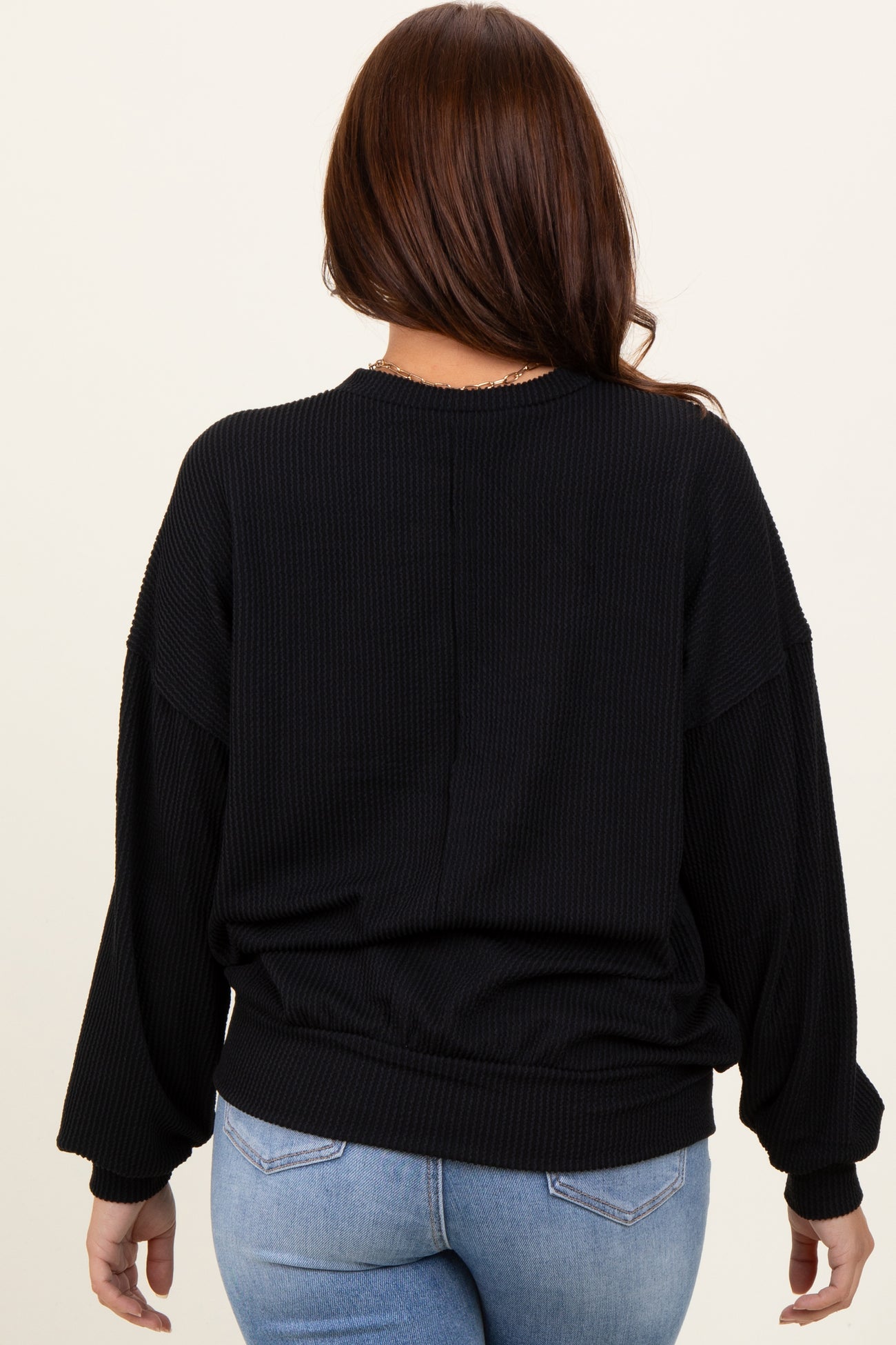 Black Oversized Ribbed Long Sleeve Sweatshirt