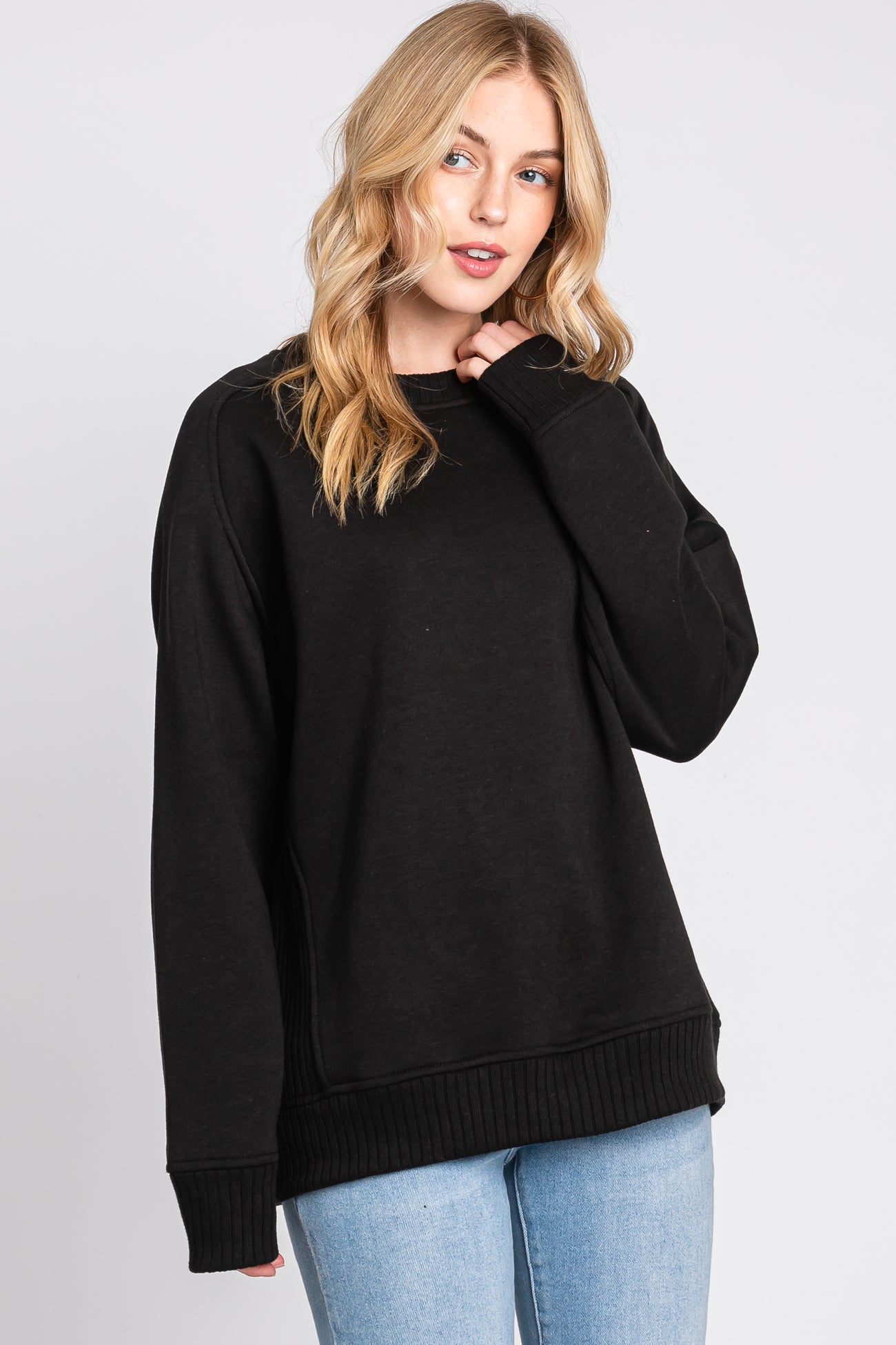 A solid terry crewneck featuring long sleeves and a rounded neckline.