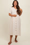 Black Ribbed Button Front Sleeveless Maternity Jumpsuit