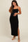 Black Ribbed Lace-Up Back Side Slit Maternity Midi Dress