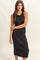 Black Round Neck Bodycon Ribbed Knit Midi Dress
