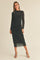 Black Shimmer Mesh Long Sleeve Ruched Midi Dress