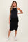 Black/Soft White High Neck Ribbed Sleeveless Maternity Midi Dress