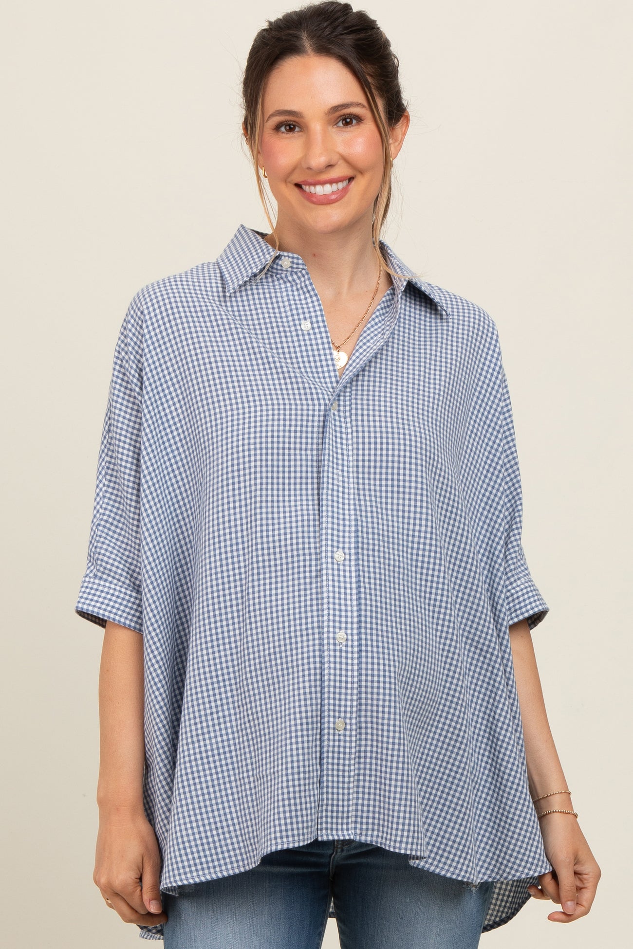 Blue Checkered Oversized Button Down Maternity Shirt