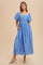 Blue Embroidered Shirred Puff Sleeve Maxi Dress