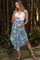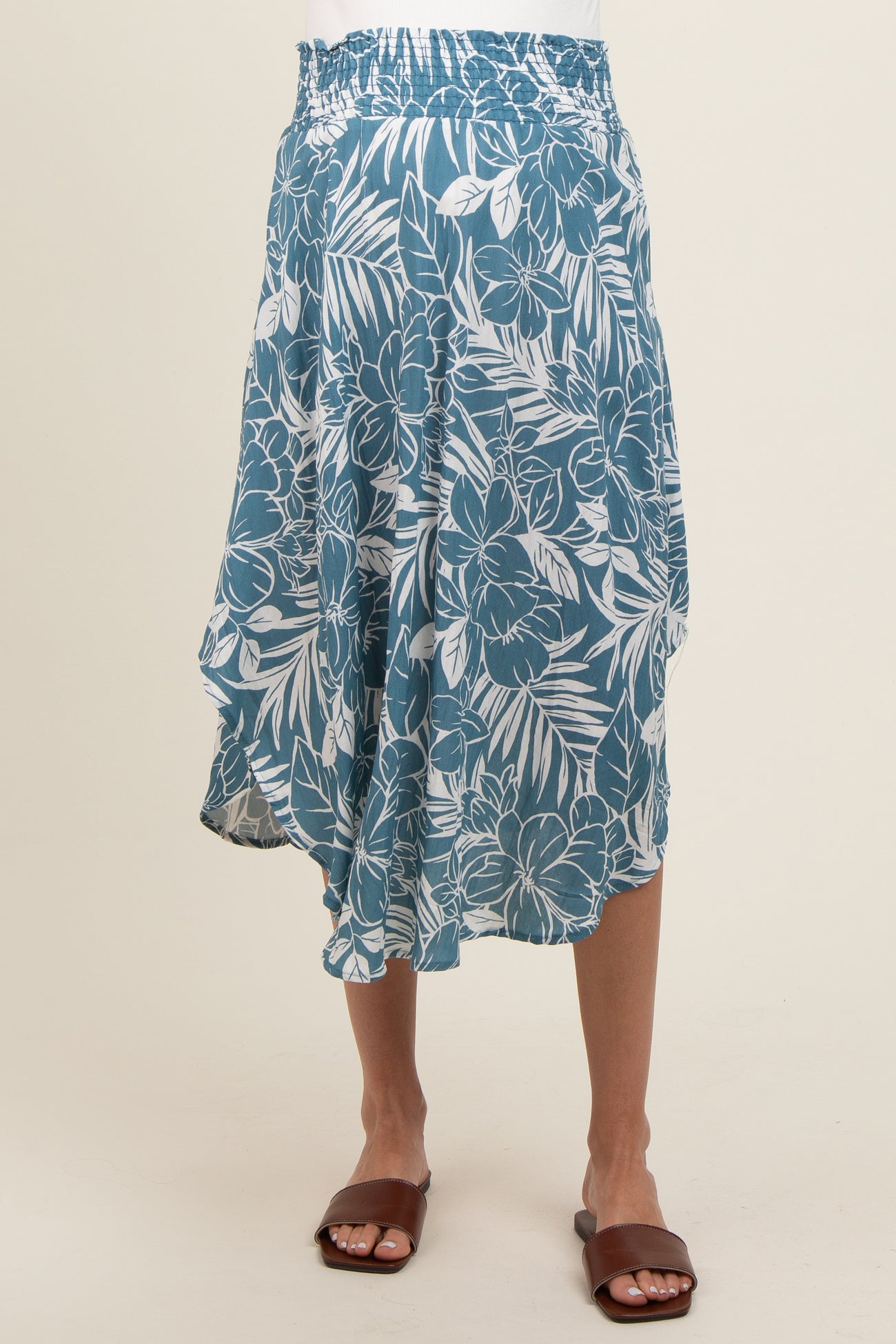 Blue Floral Smocked Waist Round Hem Maternity Midi Skirt